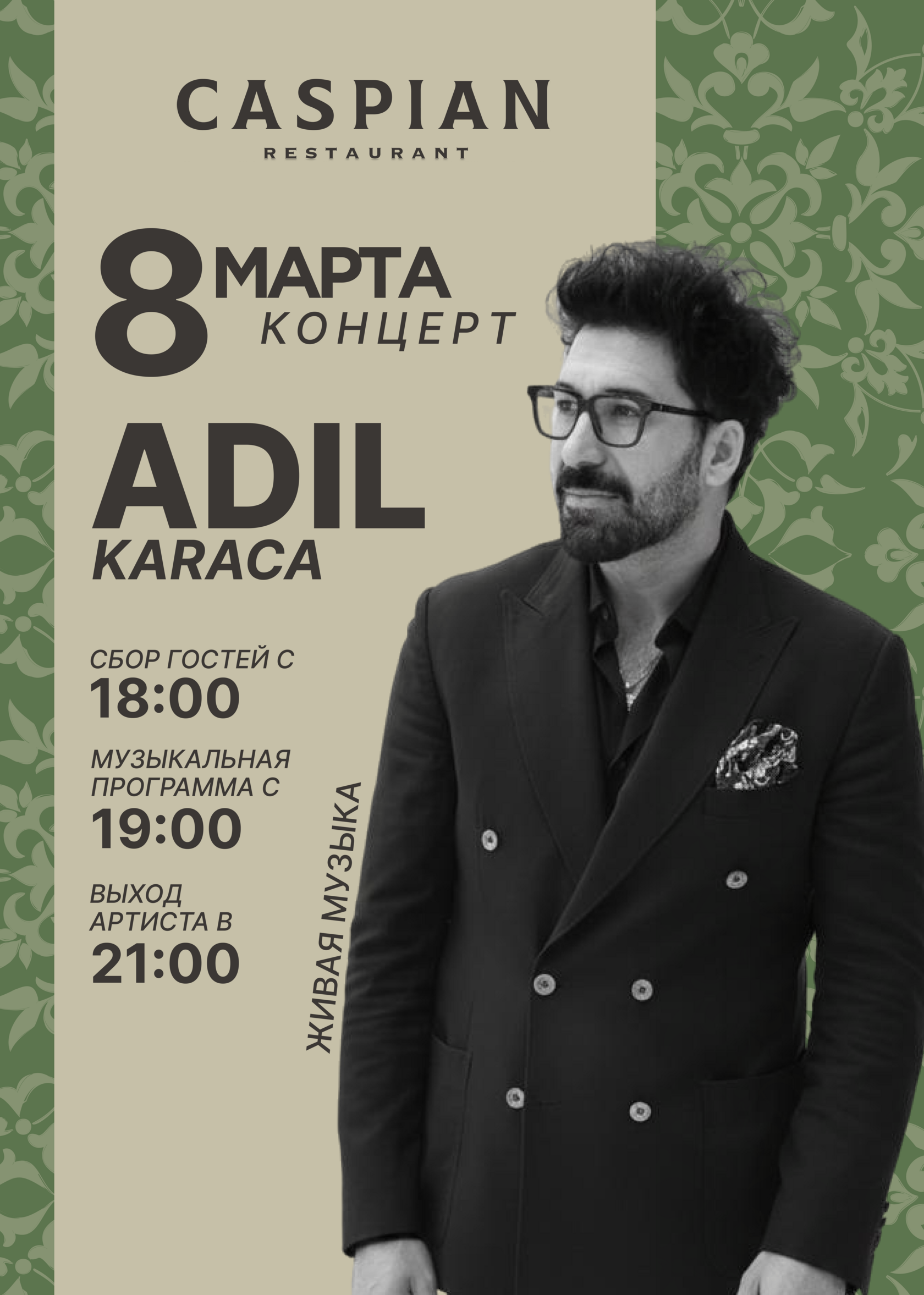 В музыкальном зале ресторана Caspian пройдет концерт ADIL KARACA, который действительно поможет пробудиться после зимы, зарядиться солнечной энергией и танцевать так, чтобы снег точно расстаял.